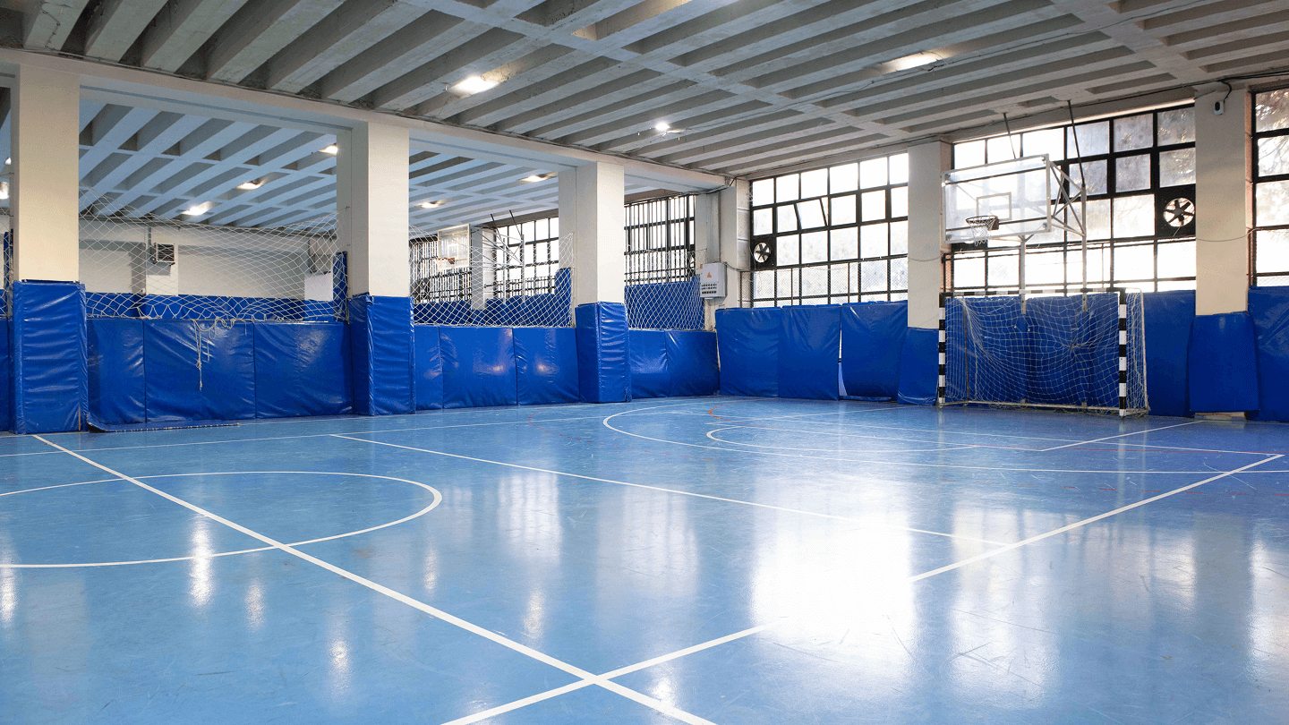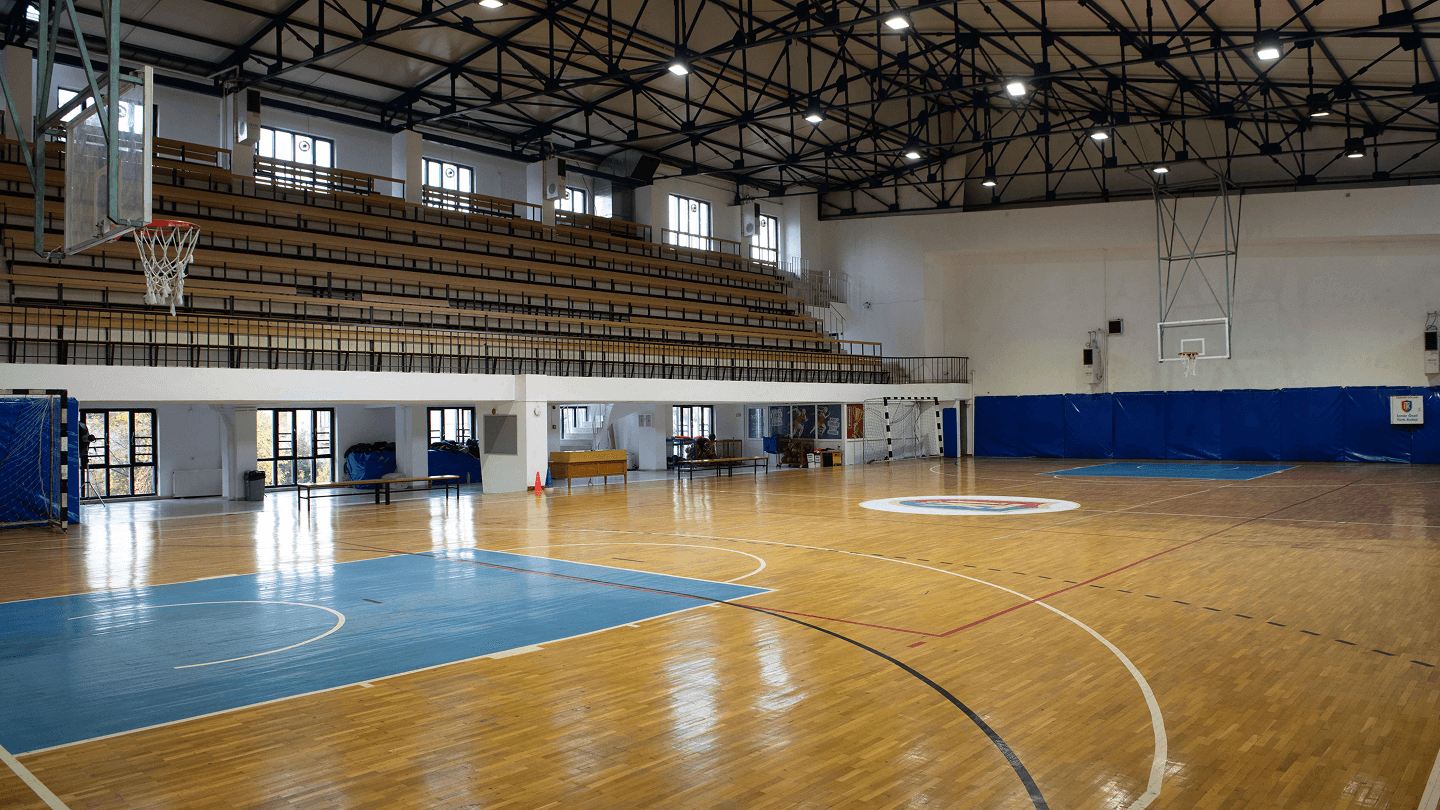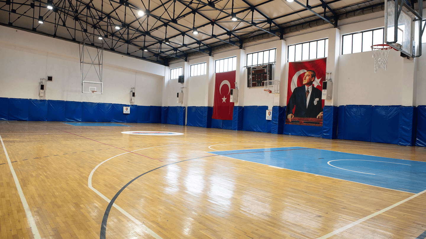 Geniş spor alanları ve donanımlı konferans salonu.