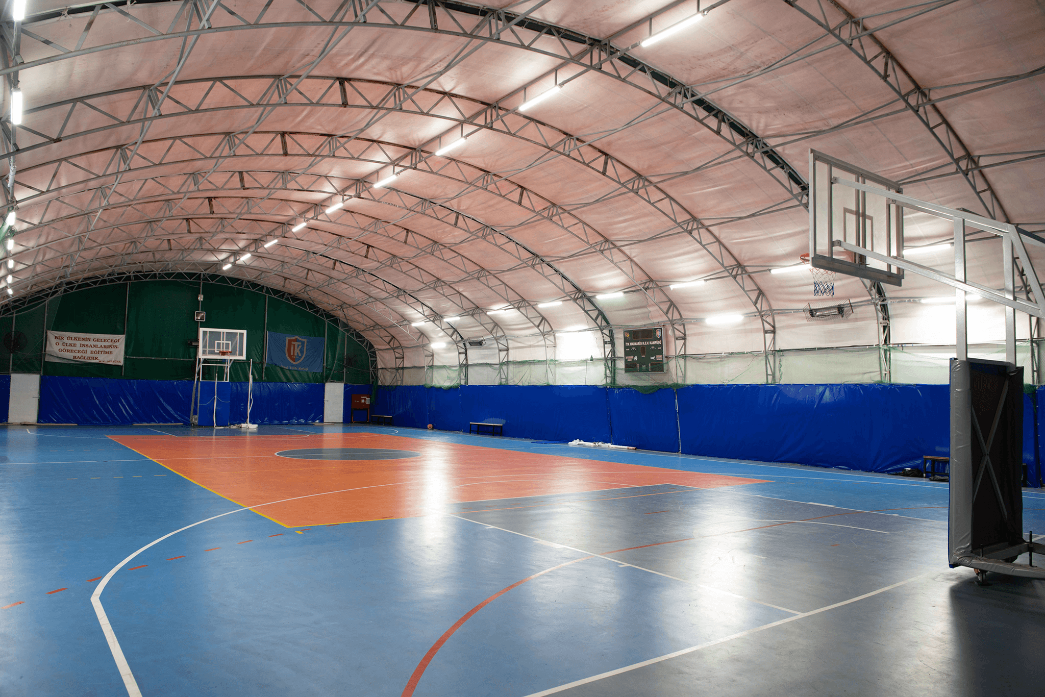 Çim saha, spor salonu ve çok amaçlı salon.