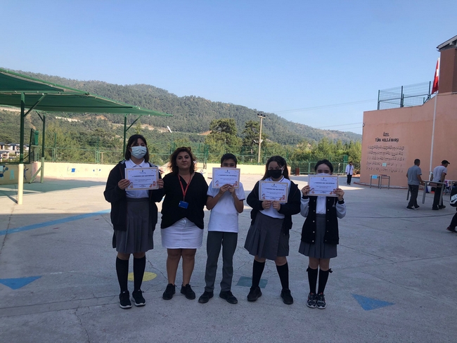 Özel Türk Koleji Marmaris Ortaokulu öğrencileri, öğretmenleri Fulya Öztürk Taşcı, Pelin Yılmaz, Hüsamettin Taşcı, Derya Öztürk, Fatma Hızarcı, Periman Genç, Deniz Gürpınar, Hatice Pusat, Dilara Öz, Can Büyükmehmetoğlu rehberliğinde 9 Mayıs e-Twinning Günü’nü kutladılar. Okulumuzda yürütülen üç e-twinning projesinin içeriğini kapsayan oryantiring ile öğrenciler hem diğer projeleri tanımış, hem de kendi projelerini tanıtmış oldular. Projeler arası işbirliği ile e-twinning projeleri tanıtılmış oldu. Oryantiringe katılan öğrencilerimize katılım belgeleri, oryantiringi birinci olarak tamamlayan takıma da birincilik sertifikası takdim edildi.